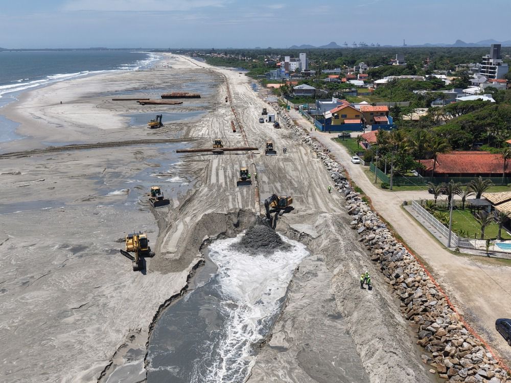 Serão removidos 12,5 milhões de metros cúbicos de areia. Metade desse material está sendo utilizado na ampliação da faixa de areia de Itapoá, ao longo de 8 quilômetros, se transformando na maior obra de engordamento de praia da história do país, em extensão.