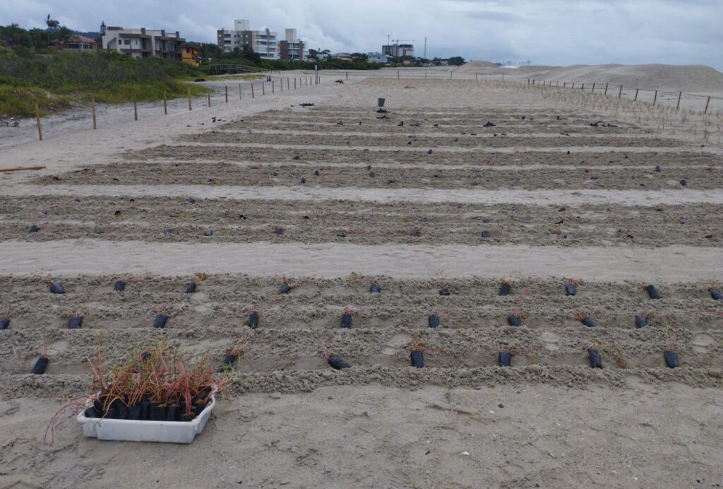 Outra inovação do projeto é a reconstituição das dunas ao longo dos 8 quilômetros de praia, que conta com o plantio de milhares de mudas de espécies nativas de restinga.