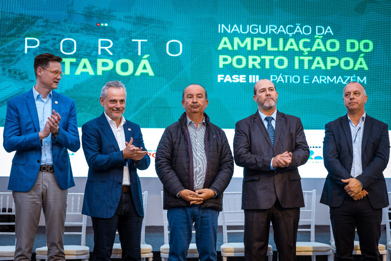 Com a presença do Governador do Estado de Santa Catarina, Jorginho Mello, do Secretário Estadual de Portos, Aeroportos e Ferrovias, Beto Martins, do Prefeito de Itapoá, Jeferson Garcia, autoridades das diversas esferas, órgãos intervenientes, entidades, clientes, funcionários e imprensa o Porto Itapoá inaugurou na última quinta-feira, 25 de abril, a fase III de expansão do terminal, com mais 200 mil m² de pátio, contemplando o armazém de 8 mil m², finalizando um aporte de R$ 815 milhões. O Ministro de Portos e Aeroportos, Silvio Costa Filho, se deslocou de Brasília até Joinville e não conseguiu chegar em Itapoá pelas condições climáticas, mas enviou um vídeo lamentando não estar presente e ratificando a importância do Porto Itapoá para a infraestrutura logística do país.